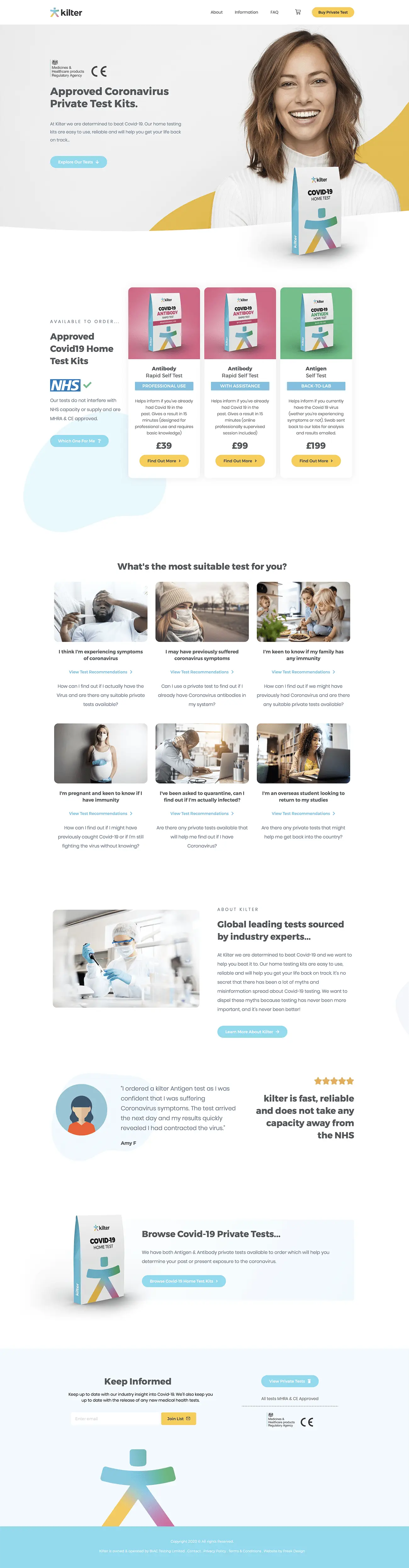 It’s been great working with the team at Kilter Healthcare to launch their e-commerce platform offering private Covid-19 Antibody and Antigen tests. With roots in private and business medical testing, Kilter collaborates with leading suppliers and labs to offer approved tests to customers across the UK and Europe.